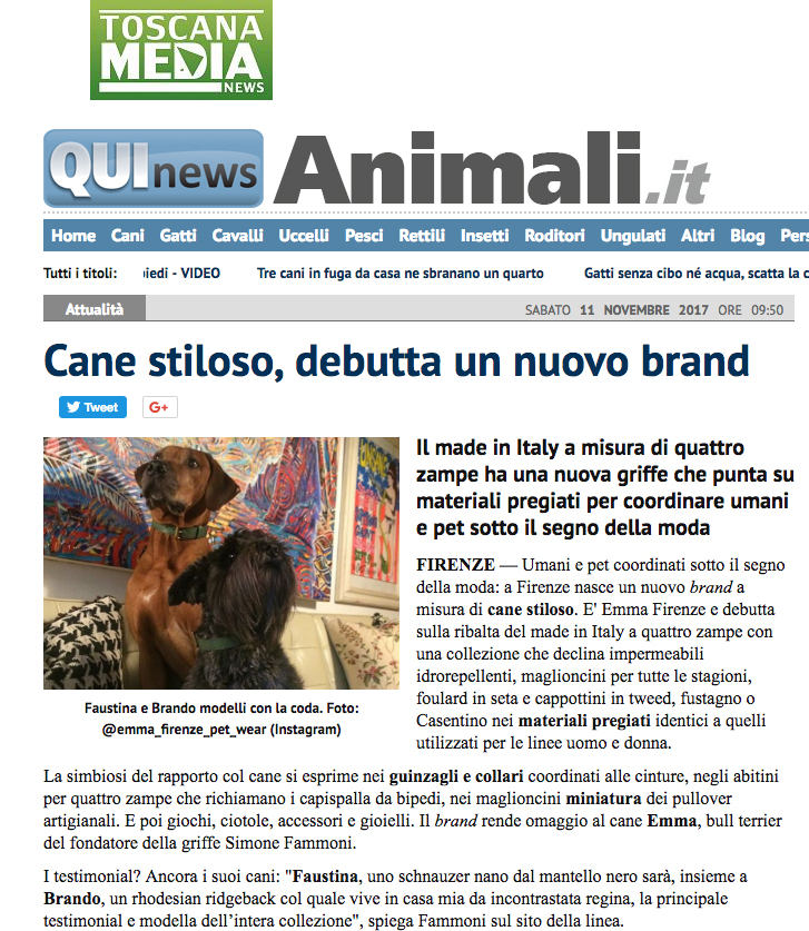 Press 11/11/17 www.quinewsanimali.it Posted by Ilaria / / Share Post Previous 10/11/17 www.toscana24.ilsole24ore.com Next 13/11/17 Corriere Fiorentino_Corriere Imprese Toscana